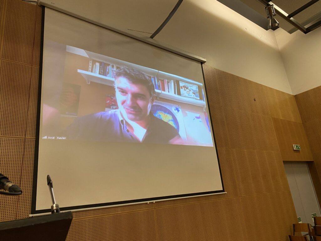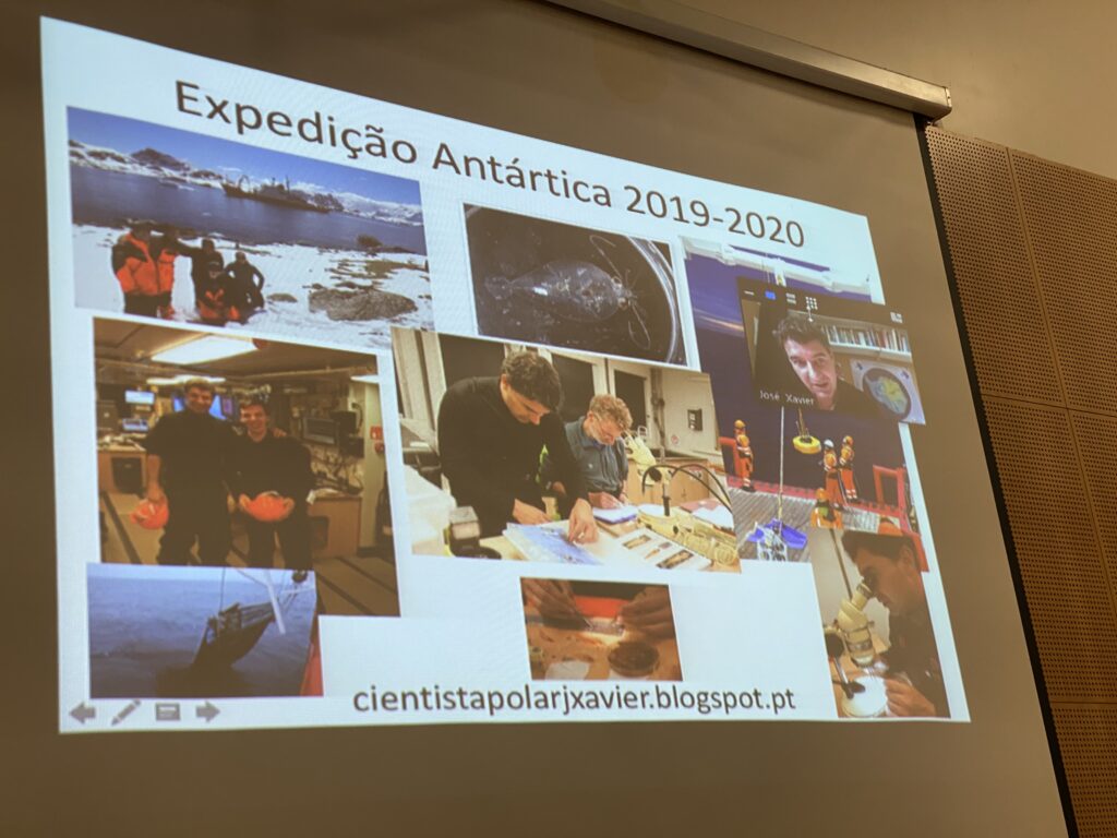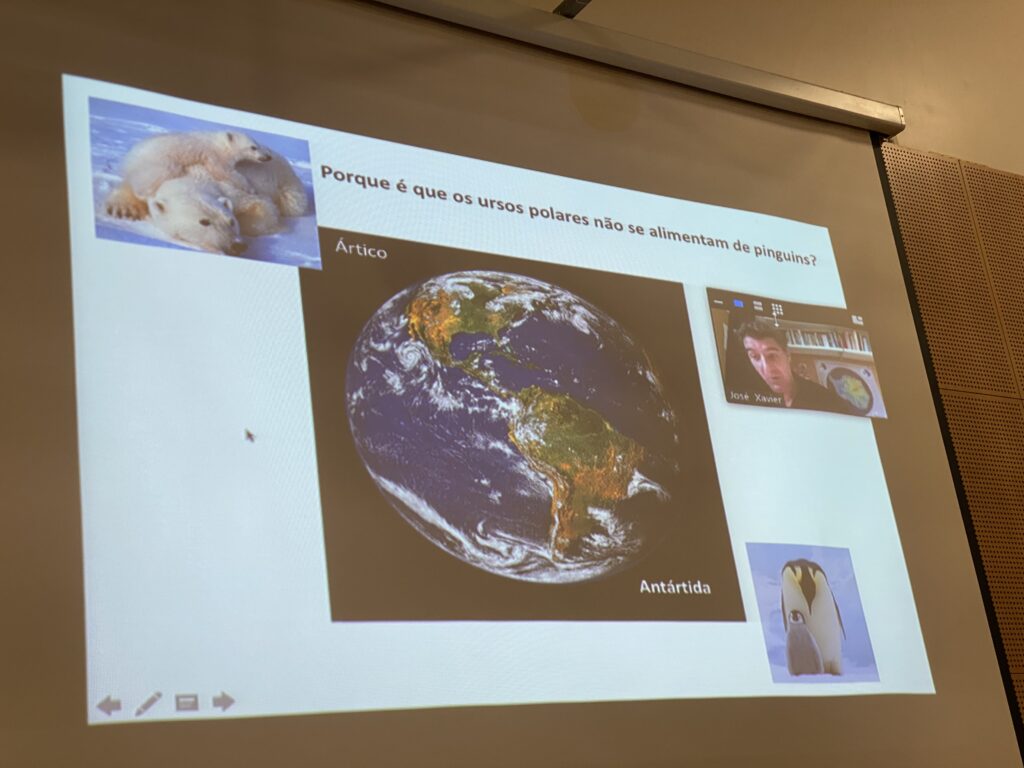 A biblioteca escolar e o Departamento de Ciências Exatas promoveram duas palestras nos passados dias 26 e 27 de outubro, com o cientista José Xavier, da Propolar, através do Zoom, destinada a mais de 100 alunos dos cursos de ciências e tecnologias do ensino secundário, que se traduziu num enorme sucesso, pela pertinência da temática e da abordagem cativante do cientista, que nos narrou as suas experiências na Antártida e o trabalho científico ali desenvolvido. Esses estudos contribuem para o estudo dos efeitos das alterações climáticas na Antártida e dos efeitos que as mesmas têm para a fauna ali existente e para o planeta.