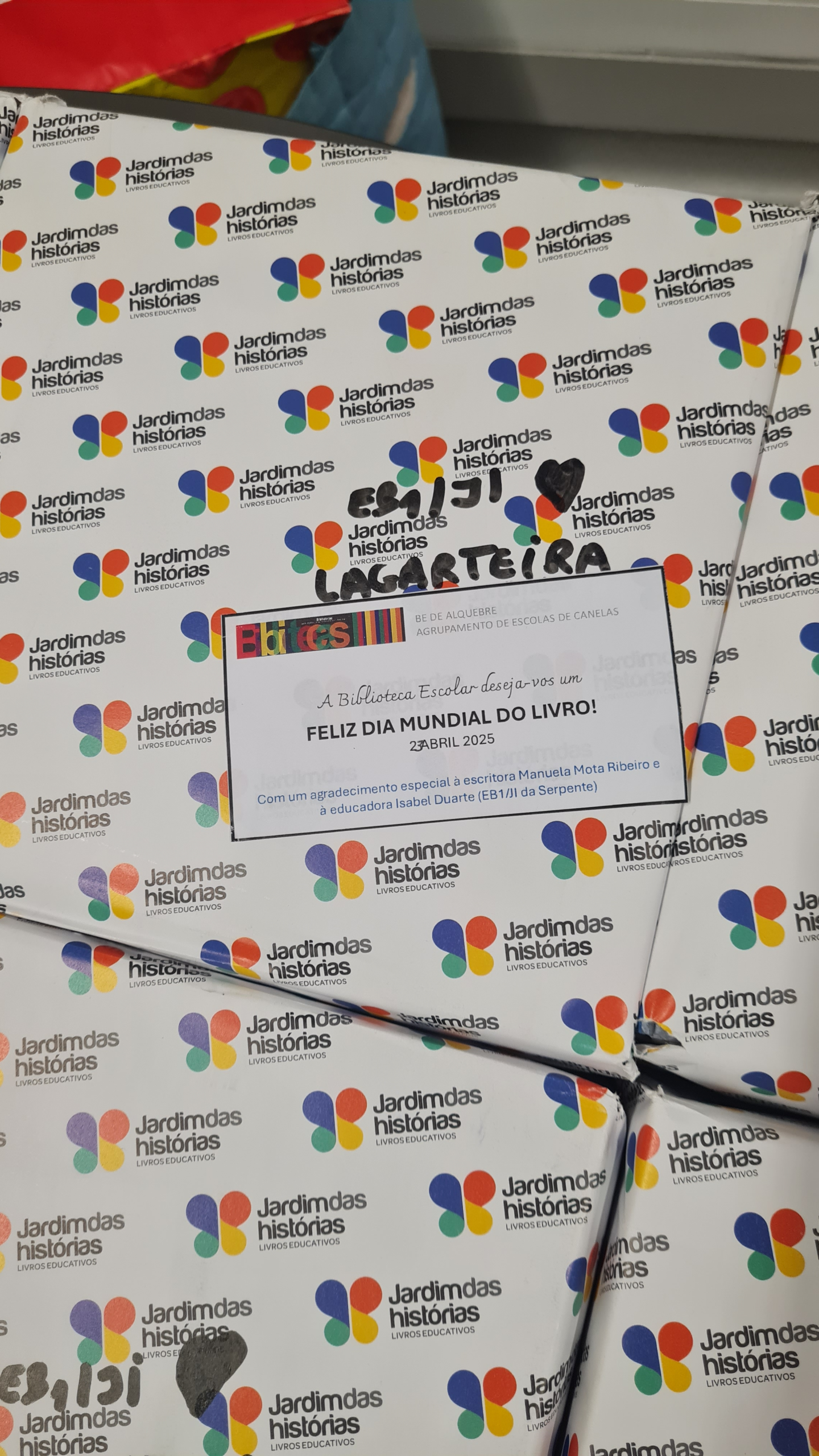 No dia 23 de abril, a biblioteca escolar desejou a todas as escolas do Ensino Pré-Escolar e 1ºCEB um FELIZ DIA MUNDIAL DO LIVRO com a oferta de um conjunto de livros da escritora Manuela Mota Ribeiro.