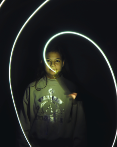 Numa das aulas abertas da Oficina do Olhar, os alunos trabalharam com a fotógrafa Mariana Santos, convidada pela artista residente Venancia Matos. Entre flashes e movimentos, experimentaram técnicas fotográficas pouco convencionais, como o “Light Painting”, em que a luz se torna o elemento principal da imagem.